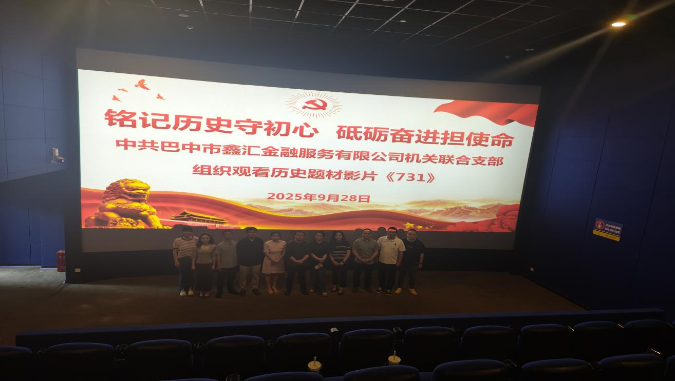 為深入推進(jìn)黨史學(xué)習教育常態(tài)化長(cháng)效化,深刻緬懷革命先烈,弘揚愛(ài)國主義精神,筑牢支部黨員理想信念根基,9月28日,中共巴中市鑫匯金融服務(wù)有限公司機關(guān)聯(lián)合支部組織全體黨員開(kāi)展了以“銘記歷史守初心 砥礪奮進(jìn)擔使命”為主題的黨日活動(dòng),集中觀(guān)看了愛(ài)國主義教育題材電影《731》。