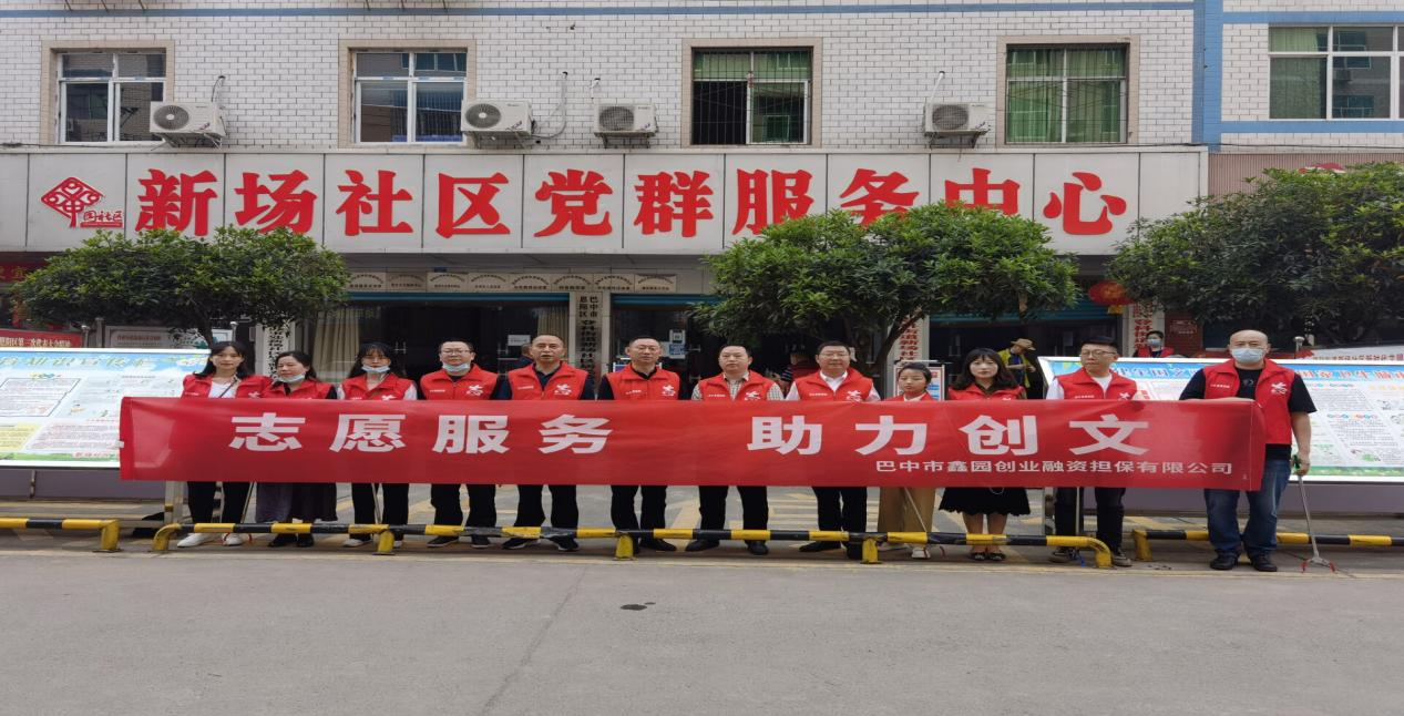7月30日上午,巴中市鑫園創(chuàng)業(yè)融資擔(dān)保有限公司黨支部組織公司黨員志愿者和青年志愿者到恩陽區(qū)新場社區(qū)開展“志愿服務(wù)、助力創(chuàng)文”活動。